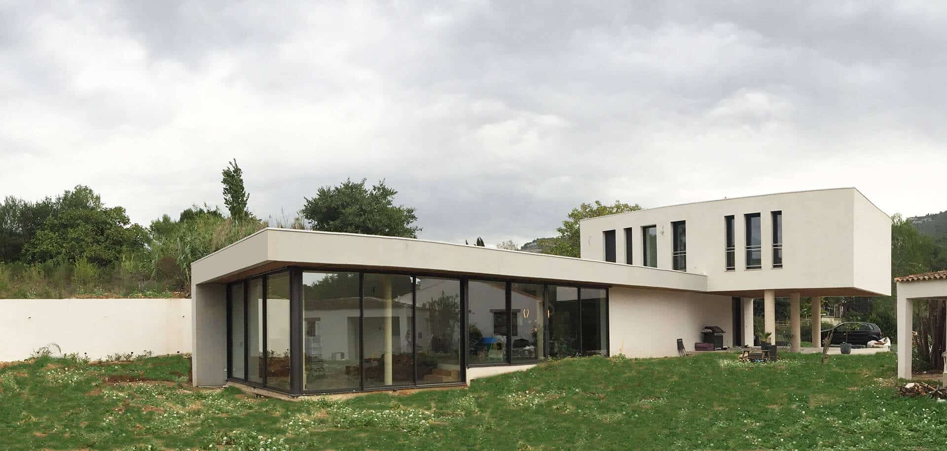 Ainsi est née cette villa intériorisée, tout en superpositions, faisant la part belle à la fluidité des espaces et à la simplicité des lignes.