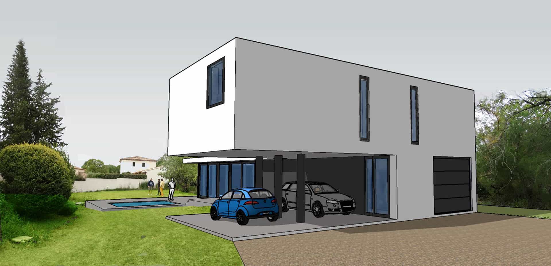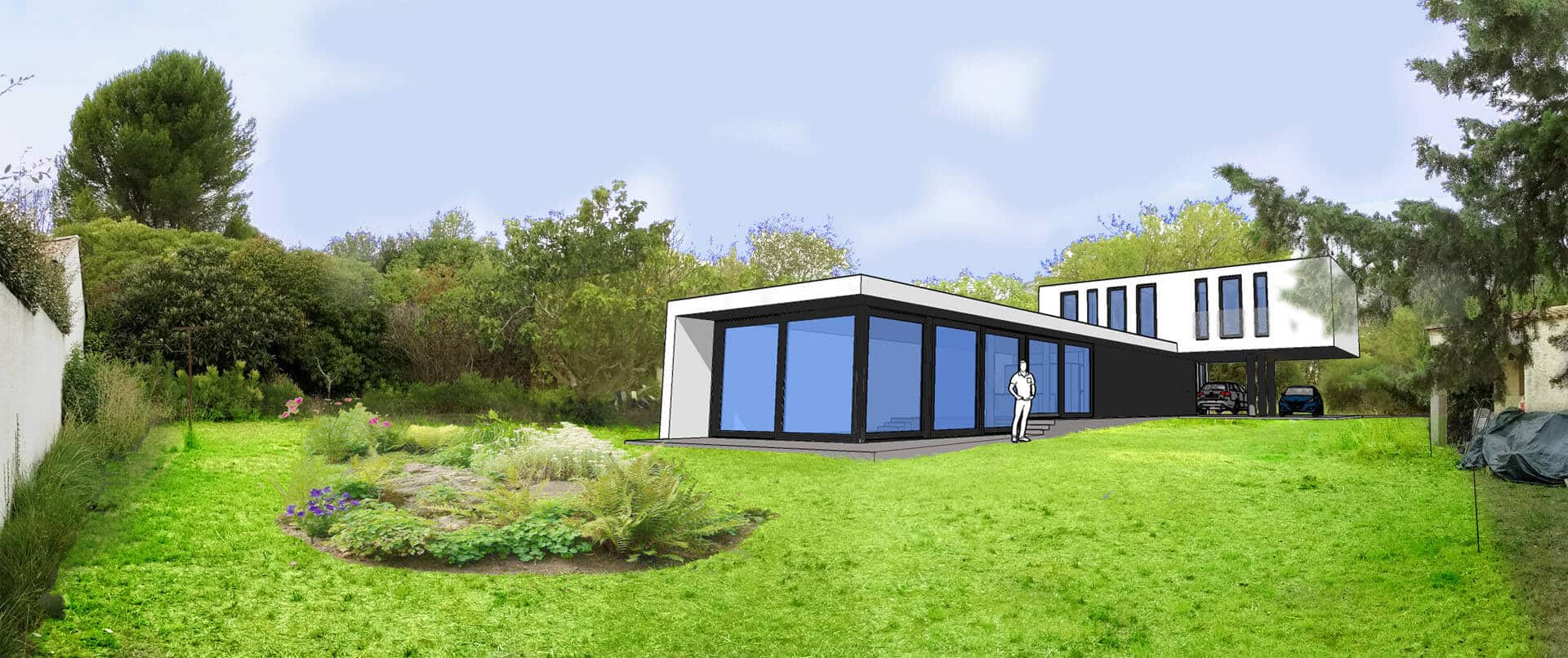 Les maîtres d’ouvrage souhaitaient une villa aux lignes épurées, résolument contemporaine, tranchant volontairement avec le contexte résidentiel du quartier, et combinant adroitement les usages spécifiques de leur famille.